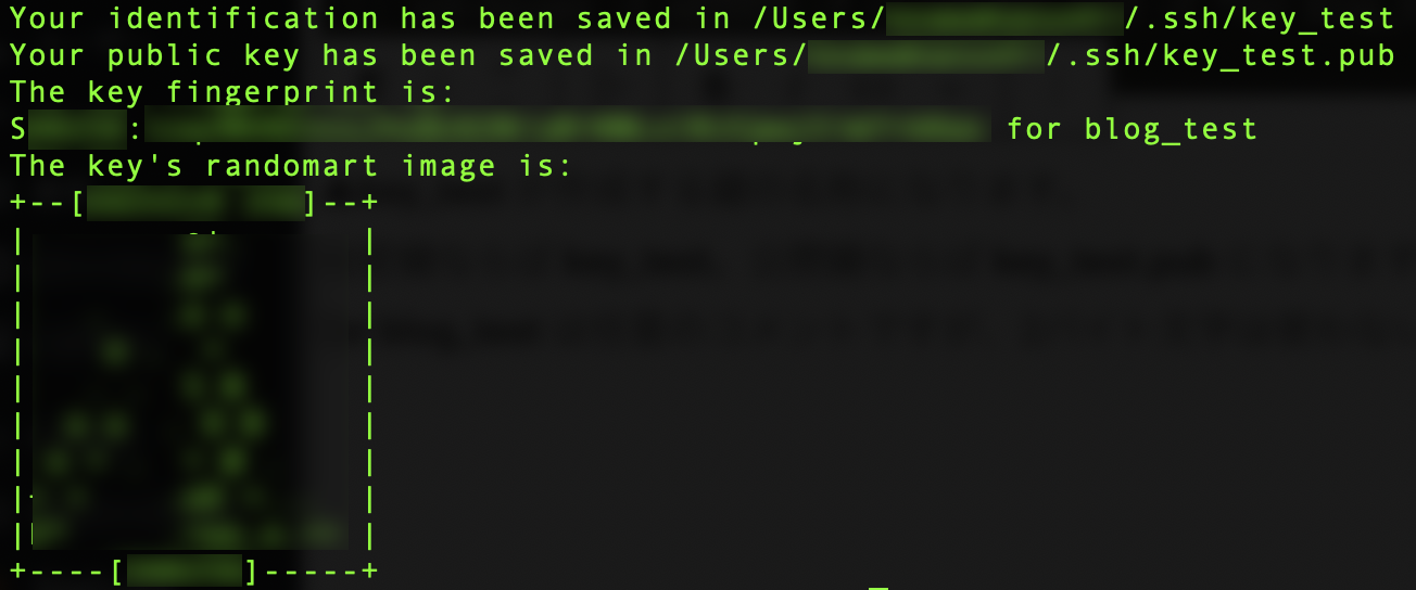 ssh-keygen -t ed25519 -f ~/.ssh/key_test -C "for blog_test"▲key_test が作成する鍵の名称になります。