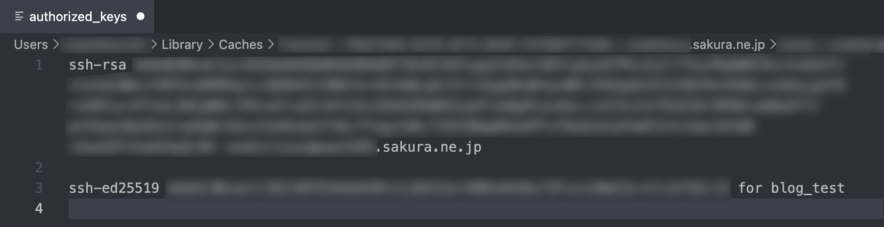 ▲authorized_keys ファイルの内容。