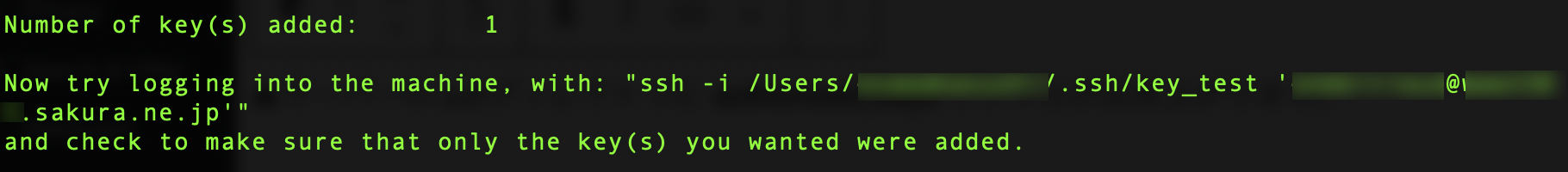 まず、 ssh コマンドでさくらサーバーに接続します。