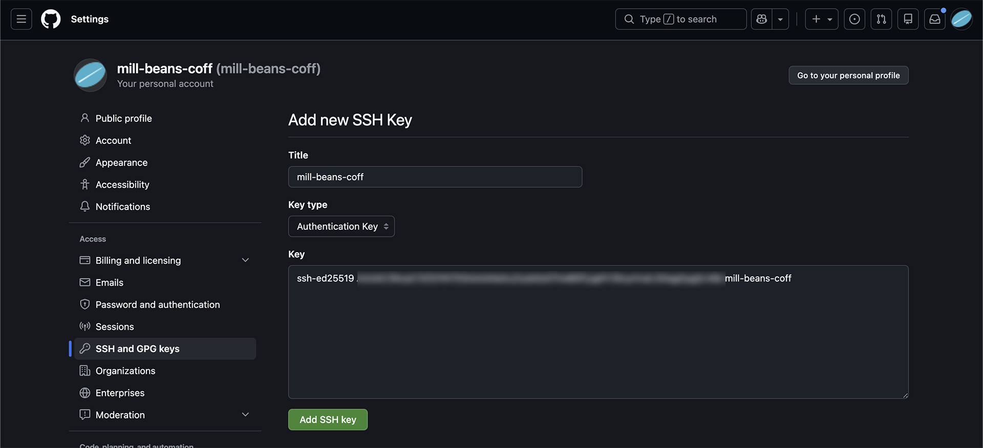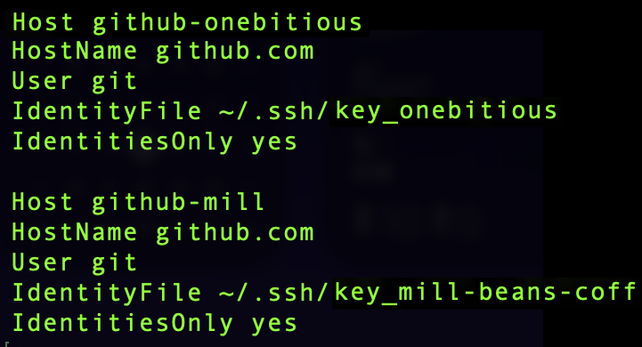 ssh-ed25519 で始まる秘密鍵が、今回追加の mill-beans-coffアカウントの追加文になります。