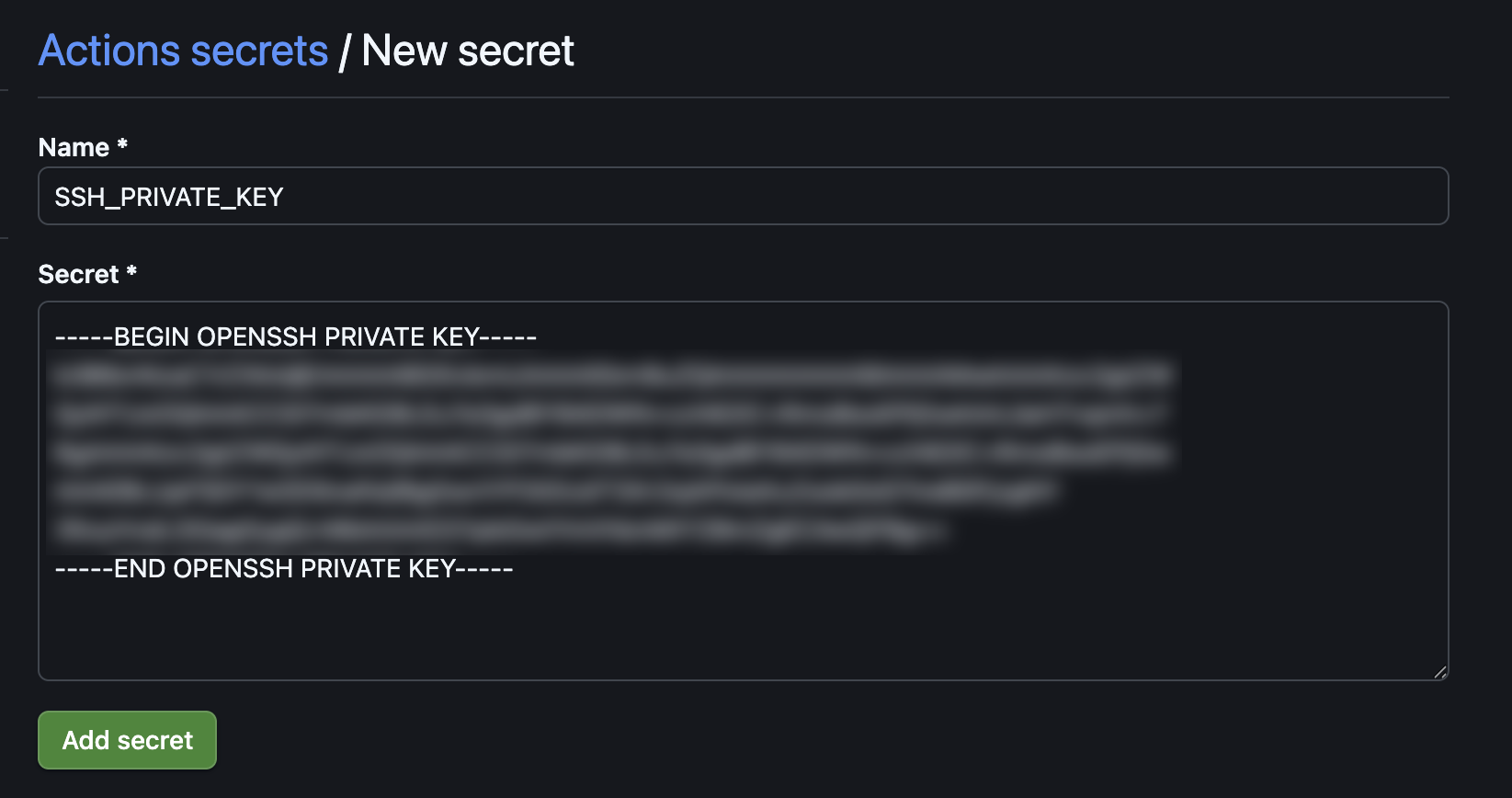 ▲Nameに SSH_PRIVATE_KEY と入力し、秘密鍵をペーストします。