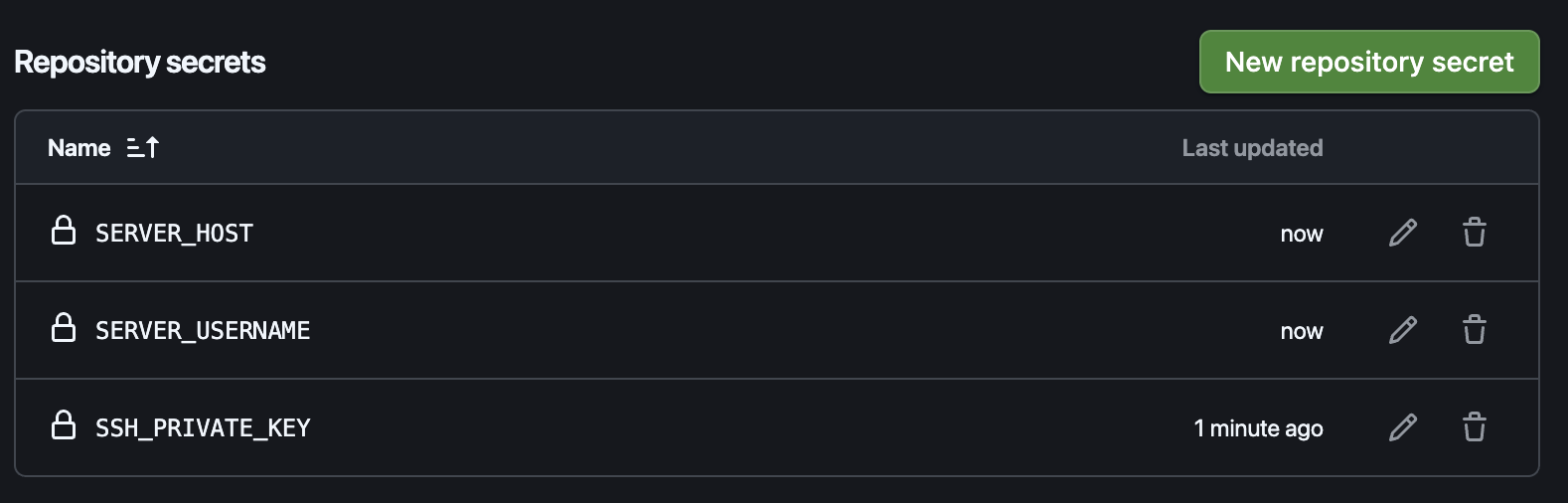 GitHubへの鍵の登録は「SSH keys」(アカウント全体)と、リポジトリの「Secrets」(Actions用)の2箇所への登録が必要になります。