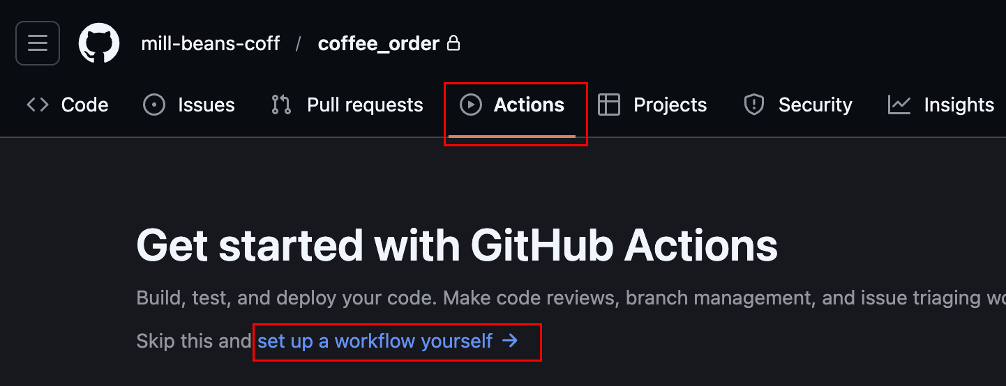 ▲GitHubでリポジトリを開きActionsタブをクリックします。