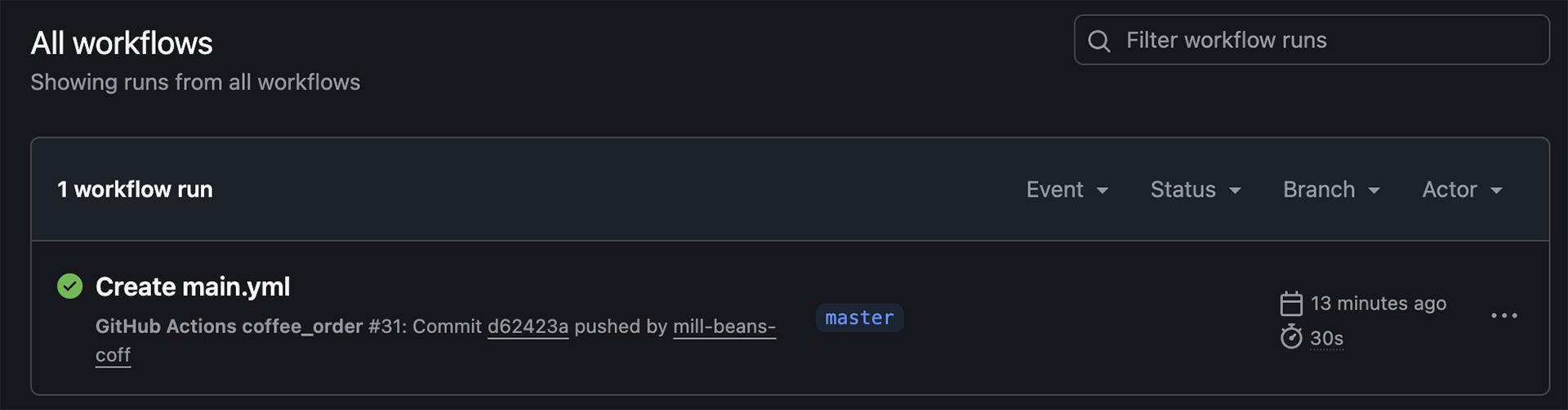 ▲Actions の履歴には、yml ファイルの作成(コミット)履歴が記録されます。