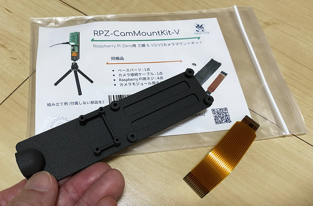 ▲Raspberry Pi Zero 2 W(以下、Zero 2 W)とカメラを固定するため「Raspberry Pi Zero用 三脚&V3カメラマウントキット「RPZ-CamMountKit-V」」を購入しました。